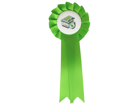 Add Remove Rosette Handmade rosette with printed fabric center 17 x 7cm Ribbon, printed fabric, metal, pin |