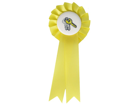Keys Rosette Handmade rosette with printed fabric center 17 x 7cm Ribbon, printed fabric, metal, pin |