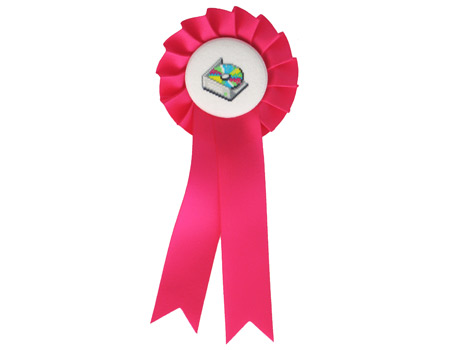 Scandisc Rosette Handmade rosette with printed fabric center 17 x 7cm Ribbon, printed fabric, metal, pin |