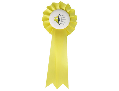 Speaker Rosette Handmade rosette with printed fabric center 17 x 7cm Ribbon, printed fabric, metal, pin |